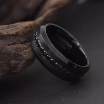 Elegant Black Tungsten Carbide Men's Wedding Ring with Cubic Zirconia